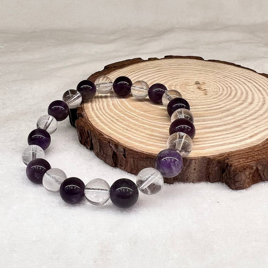 CLEAR QUARTZ+AMETHYST CRYSTAL BRACELET (MEDITATION AND RELAATION)