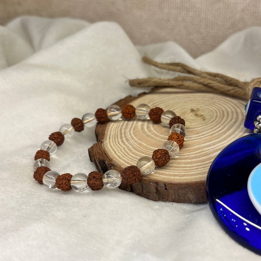CLEAR QUARTZ+RUDRAKSH CRYSTAL BRACELET (BALANCE AND ALIGHNMENT)